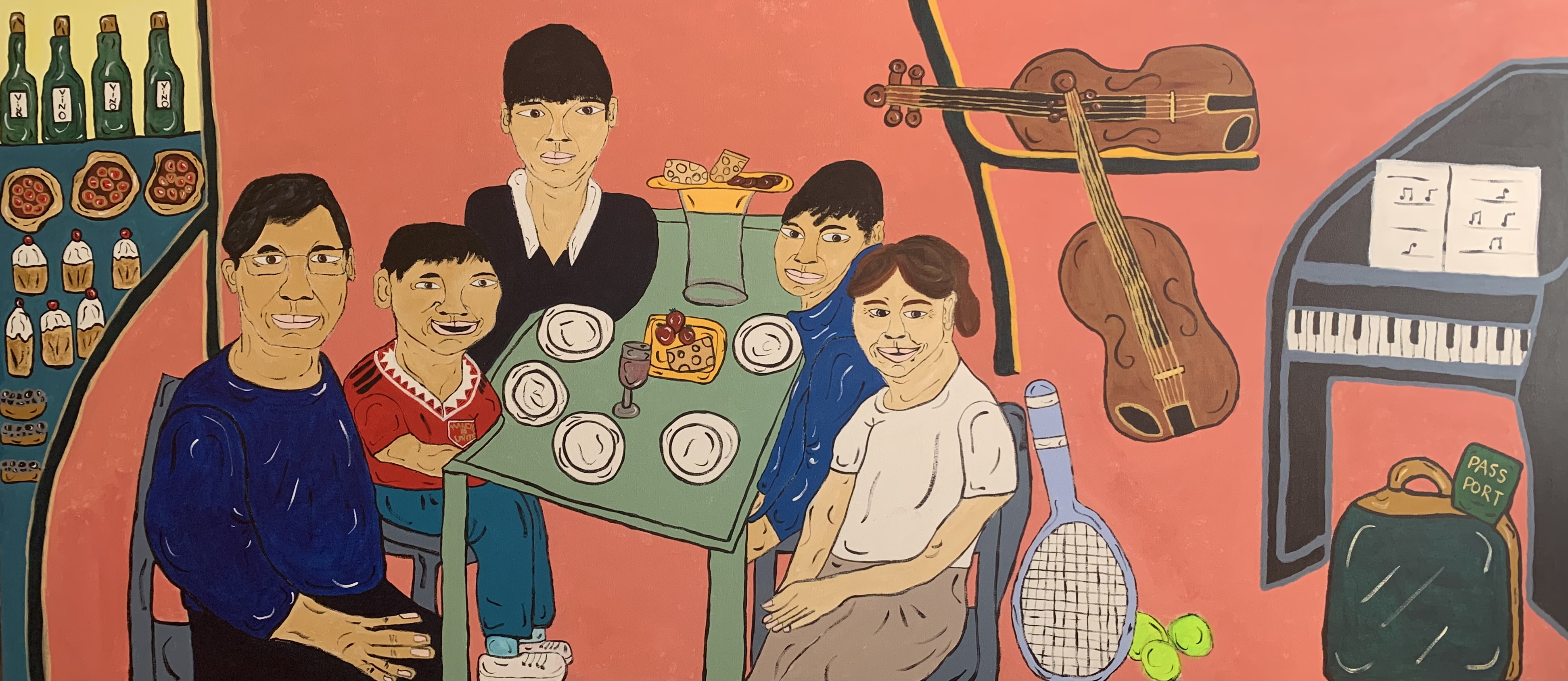 Family of Five -Acrylic on custom Canvas-2m x90cm/6.6ft x35.4inch COMMISSION SOLD