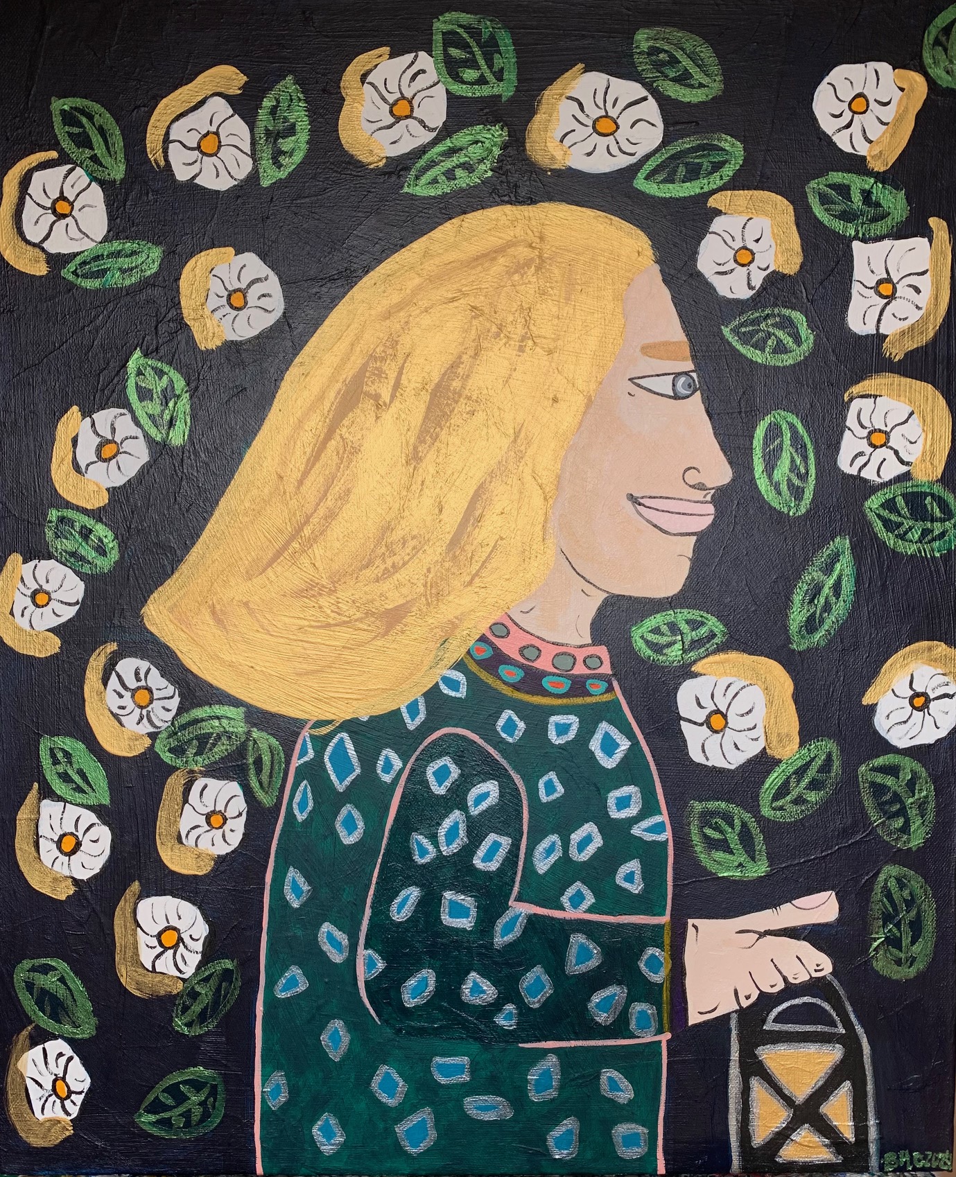 WOMAN WITH BEEHIVE - Acrylic on canvas in white wood frame - 23x29inch ( 58x73cm ) AVAILABLE £165