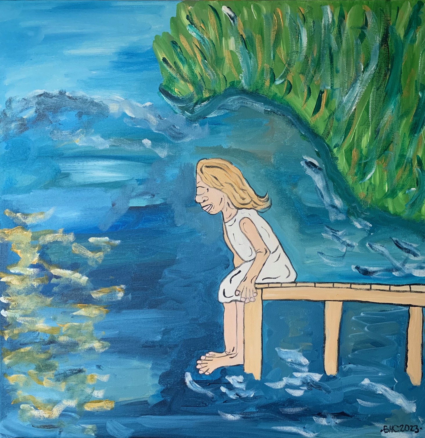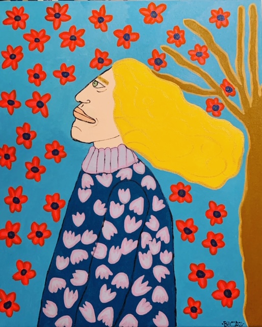 Girl on Blue 2021 - acrylic on Box Canvas - 55.9x45. .7cm / 22x18inch - SOLD