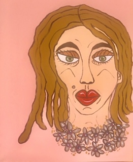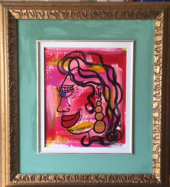 Blond Woman on Pink - Acrylic on Box Canvas - 14x18inch ( 35.5x40.5cm) SOLD
