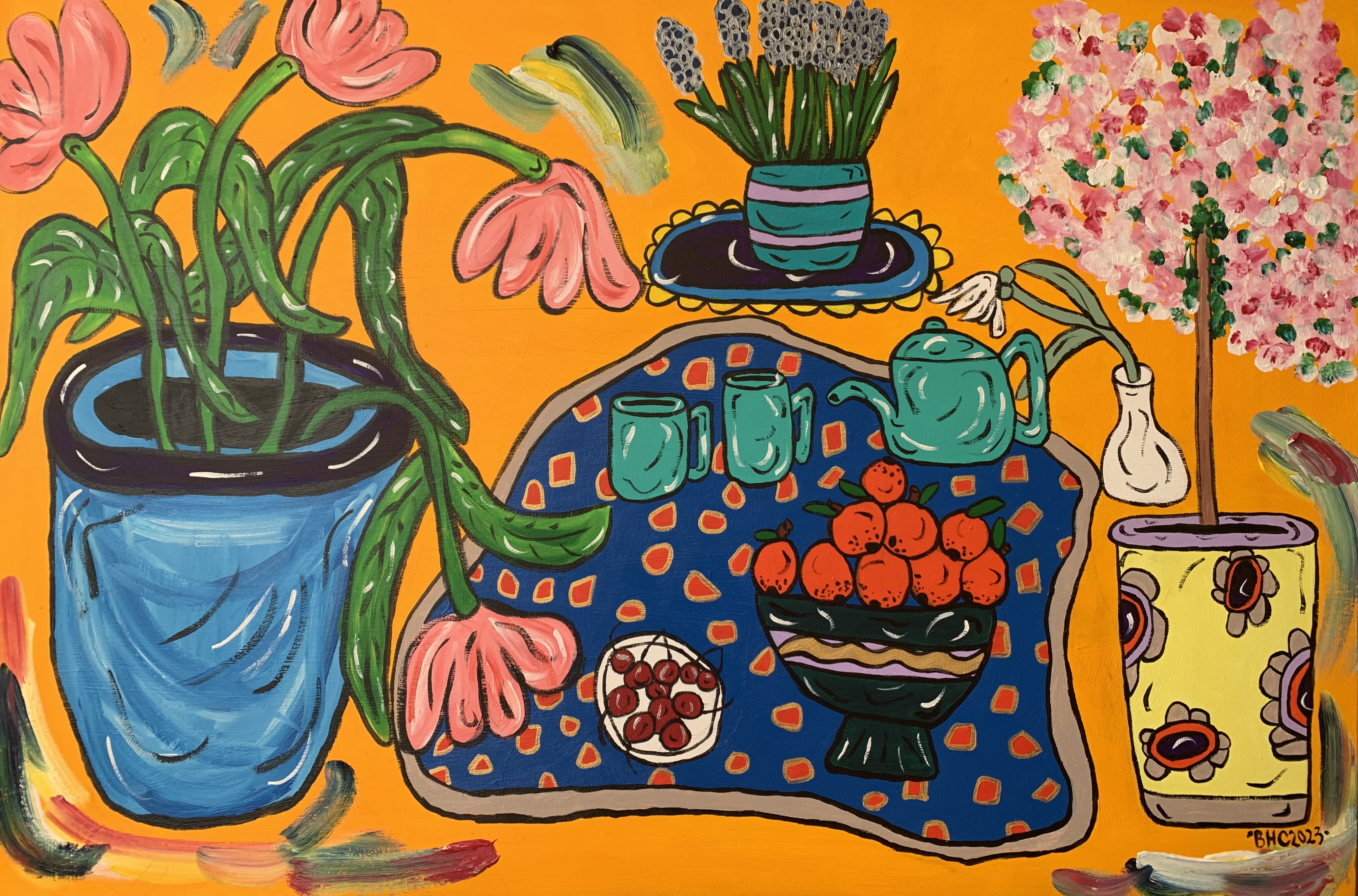 Tea & Oranges Acrylic on Box Canvas 36x24inch/91x61cm AVAILABLE £375