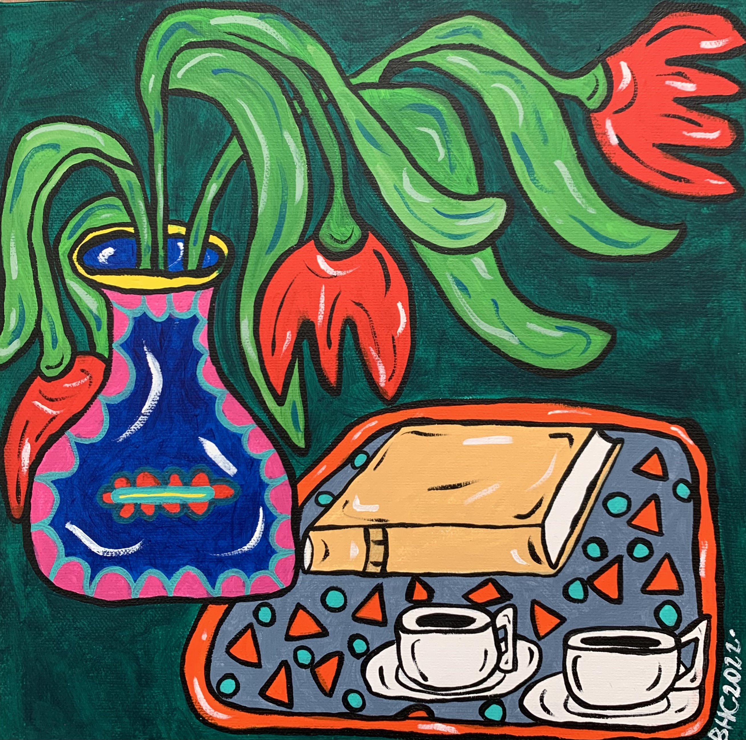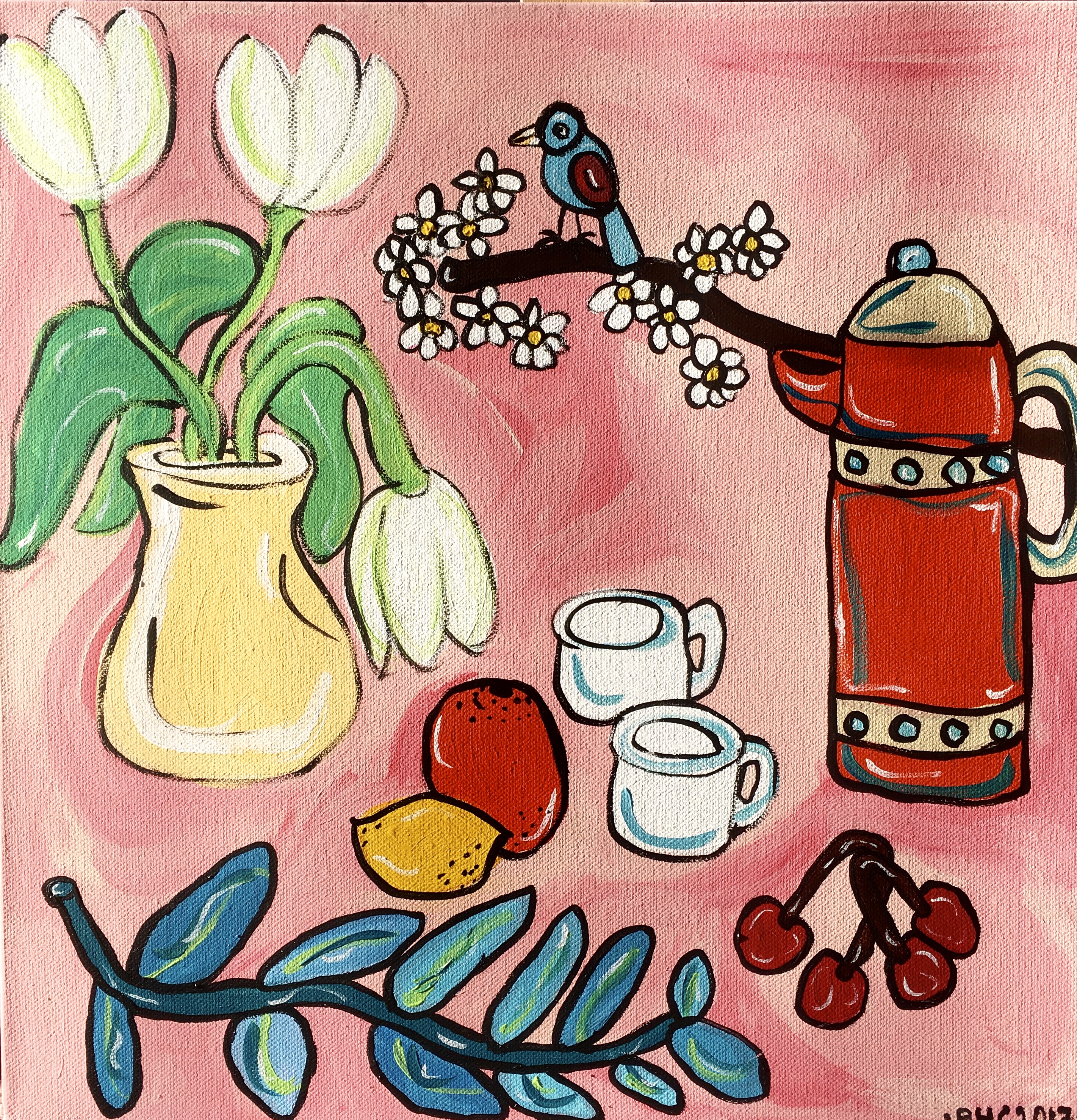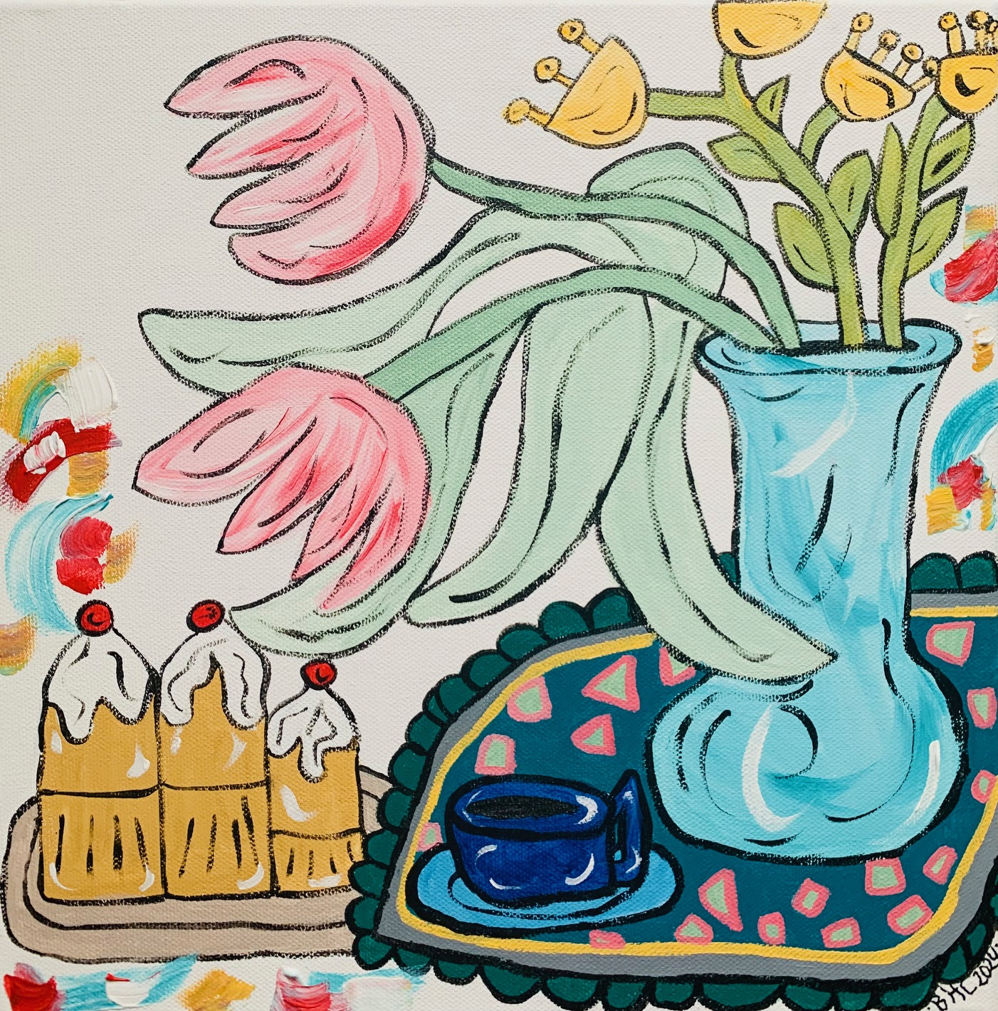 Tulips & Coffee Acrylic on Box Canvas 12inch sq/30.5cmsq SOLD