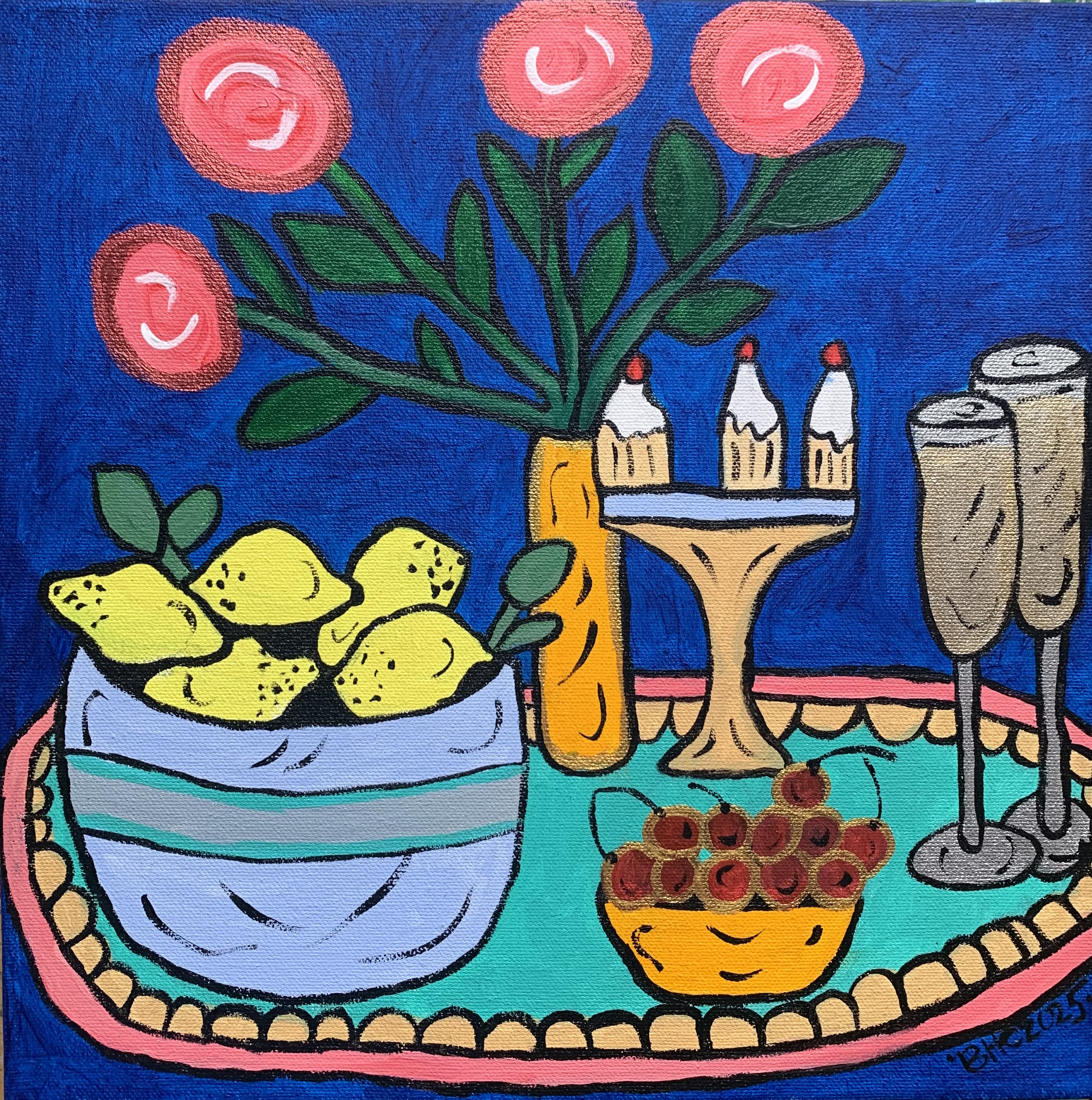 ‘Grapes & Champange’ - Acrylic on Canvas-61cm sq / 24inch sq SOLD