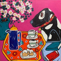 Spring Blossom & Dog-Acrylic on Box Canvas 16inch sq/41cm sq SOLD
