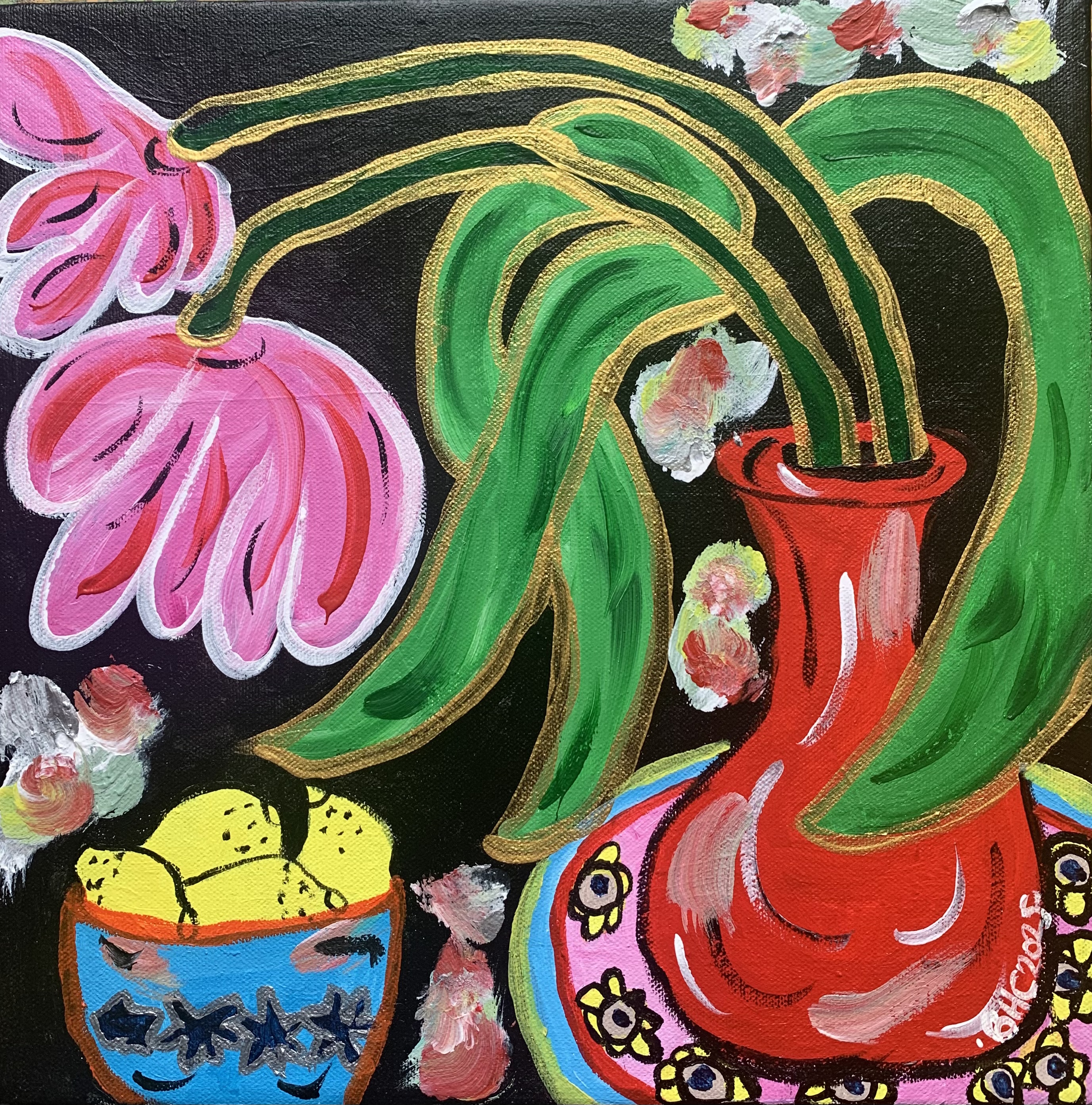 COMMISSION-Still Life - Acrylic on Box Canvas 50cm sq/19.7inch sq SOLD