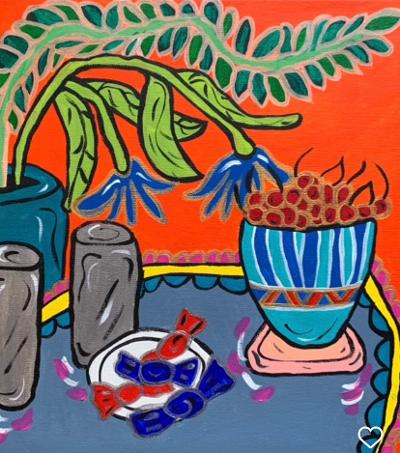‘ Cherries & Candy ‘ - Acrylic on Box Canvas-30.5cm sq / 12inch sq SOLD