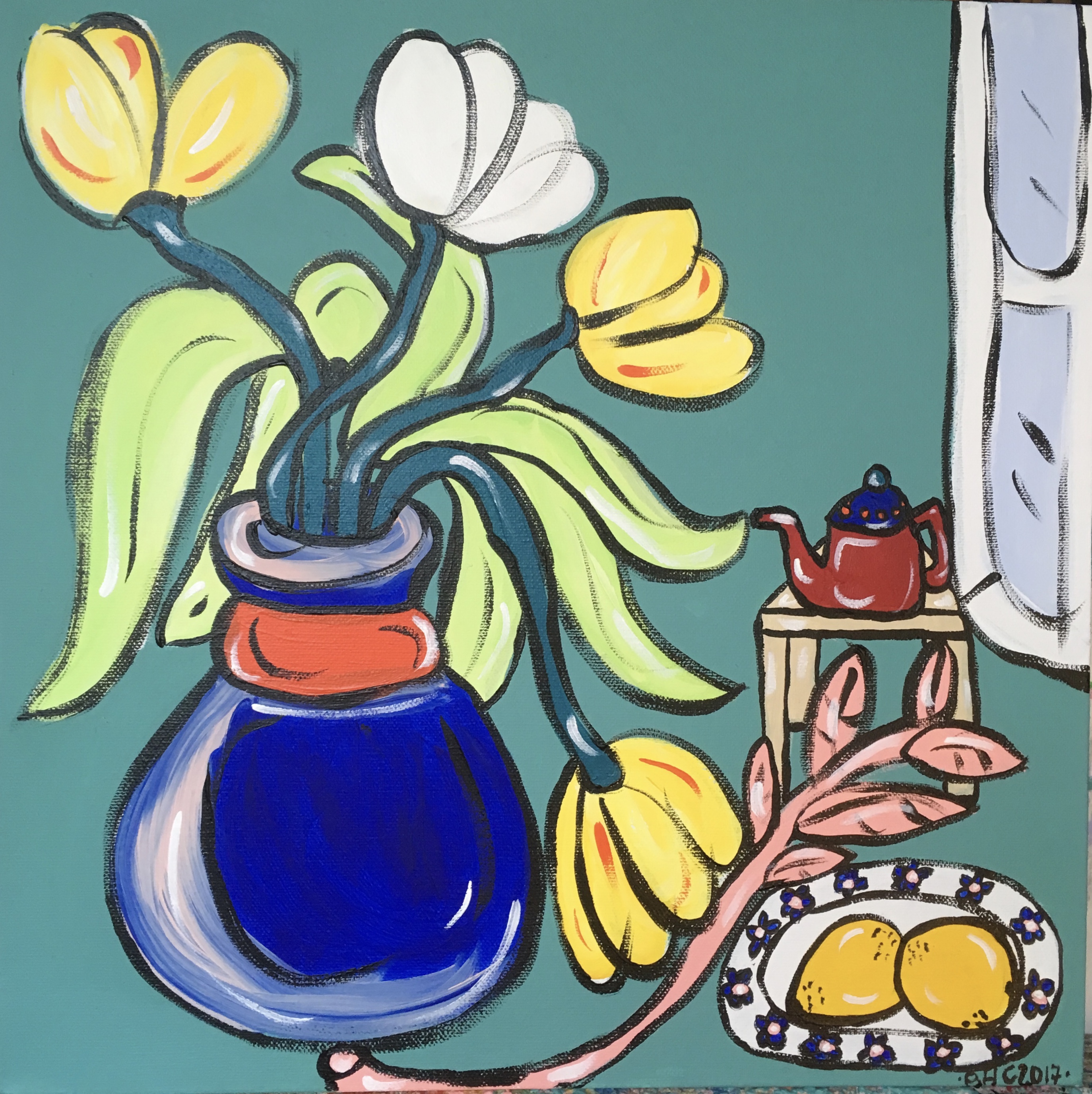 Still Life with Tea Pot-Acrylic on Box Canvas -16inch sq/40.5cm sq- SOLD